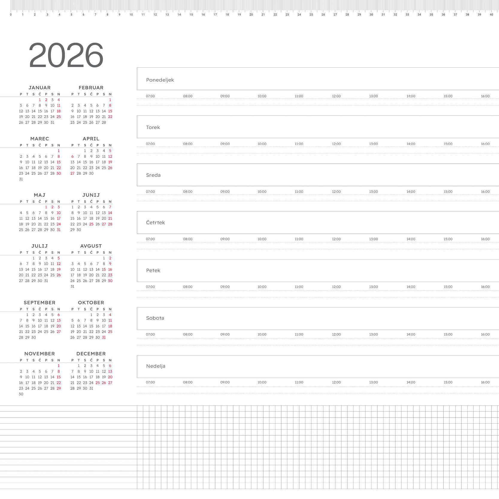 - označen letni koledar, slov. prazniki, tedni