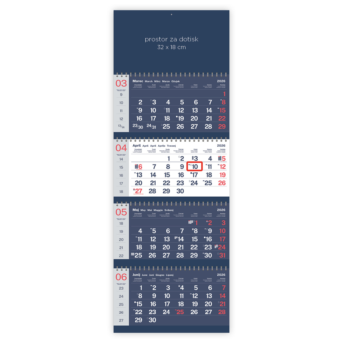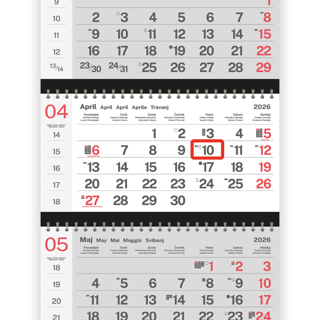 - označeni slovenski in tuji prazniki, lune, tedni